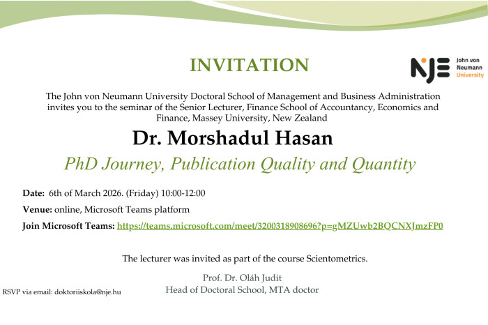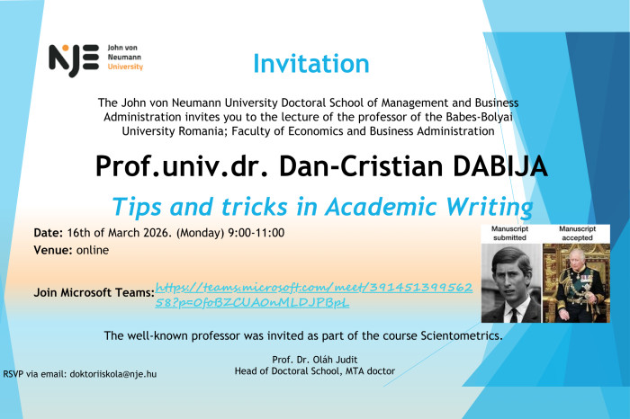 The John von Neumann University Doctoral School of Management and Business Administration invites you to the lecture of Prof.univ.dr. Dan-Cristian DABIJA