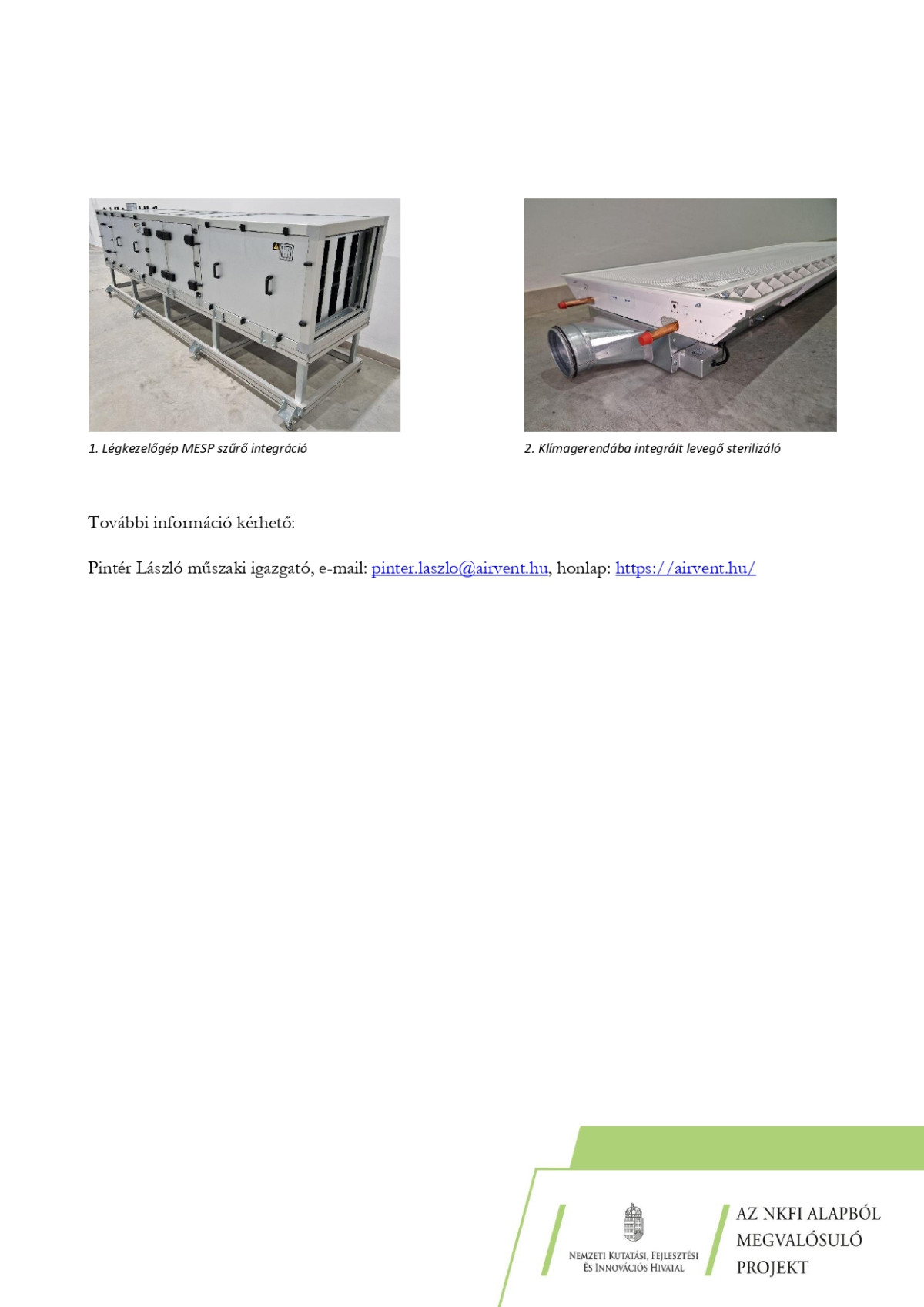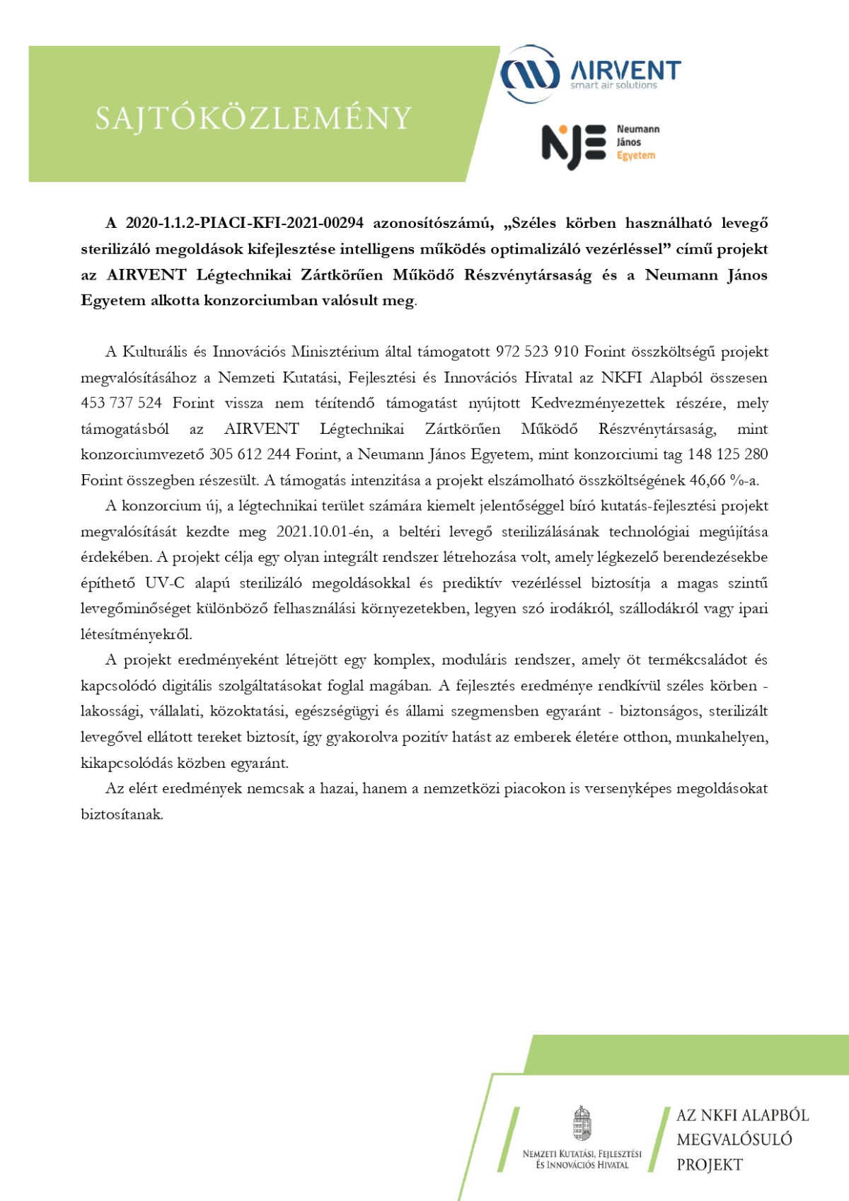 Lezárult a „Széles körben használható levegő sterilizáló megoldások kifejlesztése intelligens működés optimalizáló vezérléssel” című projekt