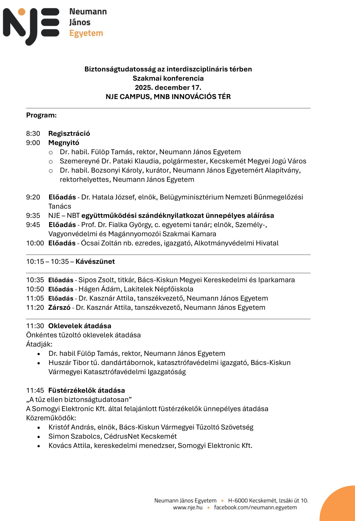 Biztonságtudatossági Tudásközpont alakul a Neumann János Egyetemen. A Tudásközpont bemutatására „Biztonságtudatosság az interdiszciplináris térben” címmel szakmai konferenciát rendez az egyetem 2025. december 17-én.