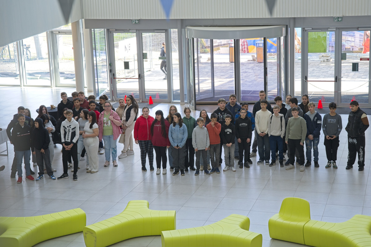Élményfizika óra, fröccsöntés és egy motiváló beszélgetés is várta azokat a csépai és orgoványi diákokat, akik 2026. április 1-jén részt vettek a Tanítsunk Magyarországért! program keretében megrendezett élménynapon a Neumann János Egyetemen.