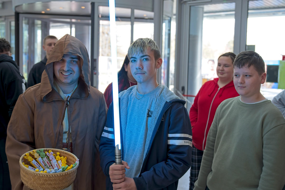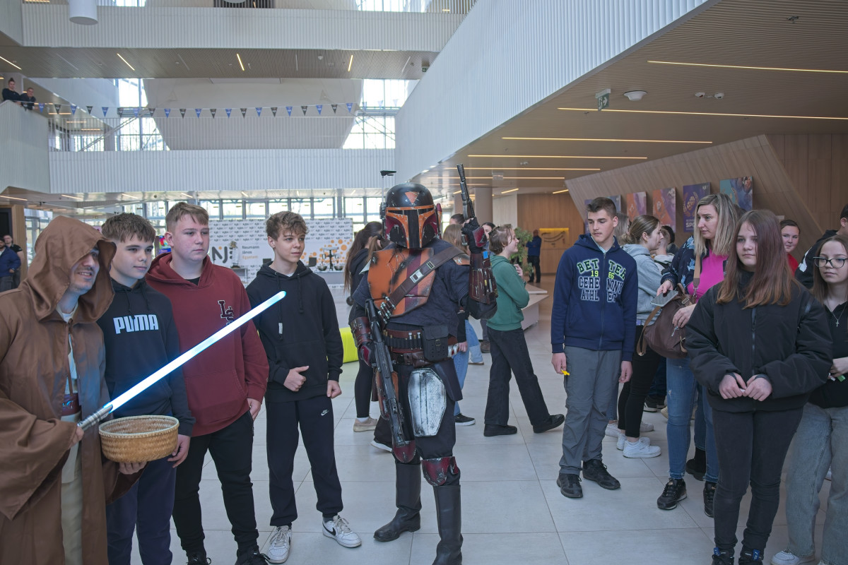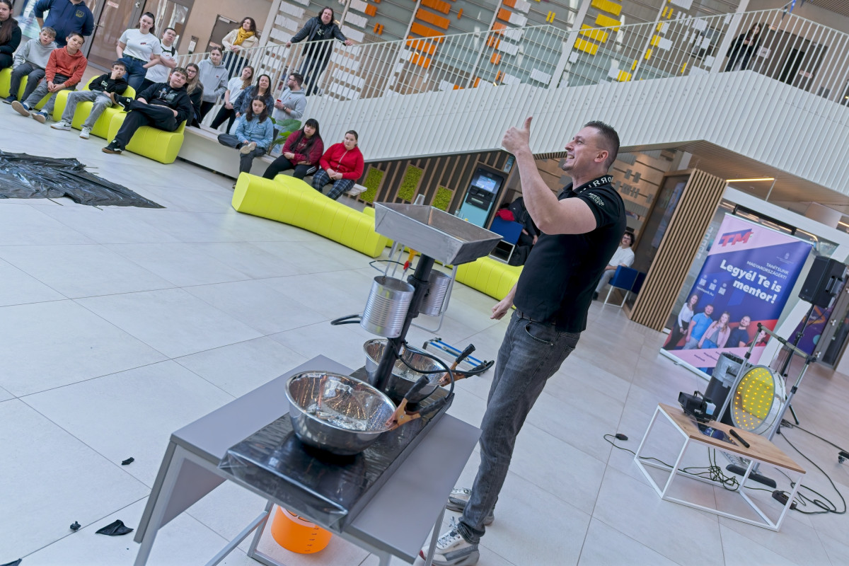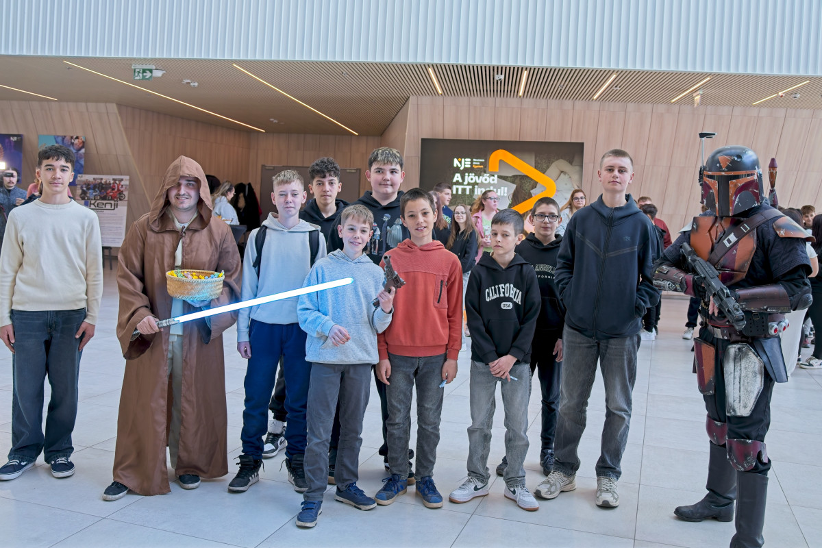 A Mandalóri és egy Jedi lovag által vezetett vidám bemelegítő után az általános iskolás diákok egy rendhagyó fizikaórán vehettek részt. Dr. Csík Norbert előadásában a tudomány szó szerint életre kelt – még lángoló kezek is szerepet kaptak a látványos kísérletek között.