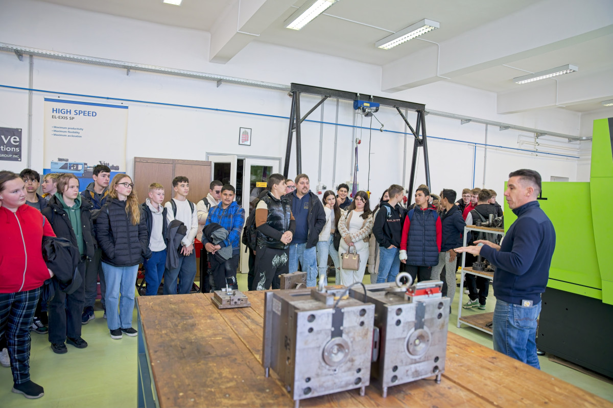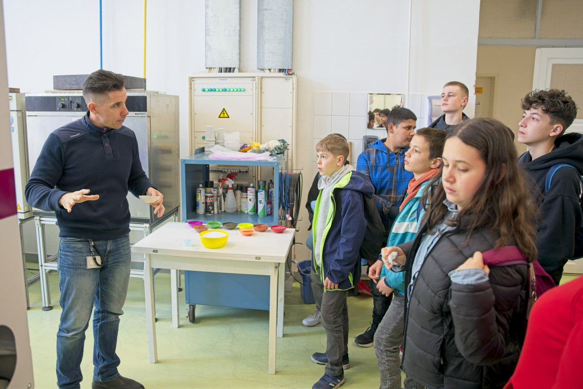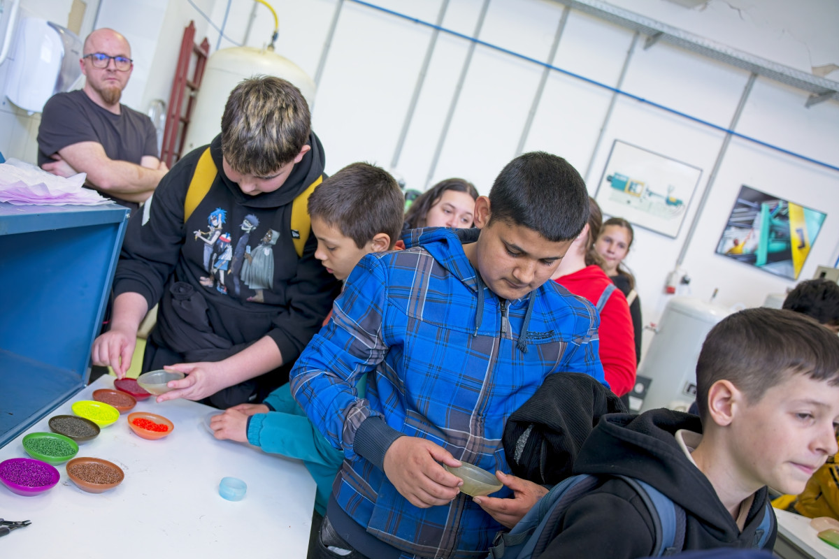 A közös hot dog ebéd után a diákok az IJAT tanszéken a fröccsöntés világába nyerhettek betekintést, ahol saját, logóval ellátott müzlis tálat is készíthettek az egyetem munkatársainak segítségével.